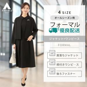 【洋服の青山】レディース 礼服 喪服 ノーカラー アンサンブル 前開き ワンピース ブラックフォーマル 黒 大学生 10代 20代 30代 春夏 秋冬 結婚式 入学式
