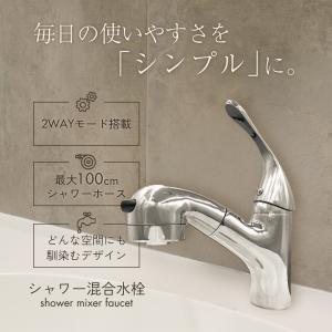 洗面蛇口 混合水栓 水栓 シャワー付き ホース 引き出し式 シングルレバー 切り替え キッチン 洗面台 浴室 ワンホール 交換 家庭用 (MIX02-SI)