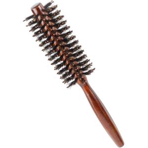 ロールブラシ 猪毛 ヘアブラシ ブローブラシ くし 櫛 コーム 木製 ヘアケア ヘアーブラシ(Brown, Sサイズ(4.3cm))