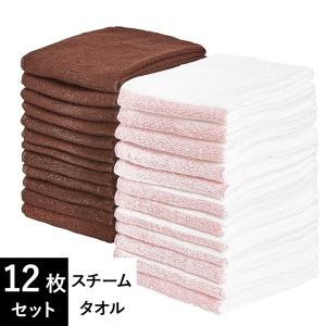 スチームタオル 12枚セット 蒸しタオル フェイスタオル 薄手 蒸し スチーム エステ サロン 理容室 美容室 業務用 まとめ買い 吸水 速乾 赤線入 綿100%