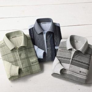 杢ジャカードデザイン長袖ポロシャツ 3色組 3枚:3色×各1枚