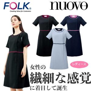 3019SC ワンピース レディース メディカル 半袖 病院受付 コンシェルジュ 病院事務 受付 NUOVO FOLK