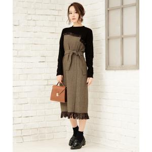 ワンピース ウエストリボンヘリンボーンドッキングワンピース*レディース「E1959」神戸レタス レディース