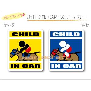CHILD IN CAR 競馬ジョッキー・乗馬バージョン ステッカー 子どもが乗っています 車 かわいい シール オリジナル KIDS 選べるカラー