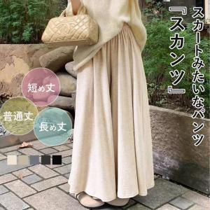 選べる丈 スカンツ レディース ボトムス パンツ ワイドパンツ ポケット付き きれいめ スウェット 低身長 高身長 春 [郵3]^b514^