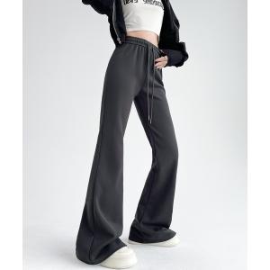 スウェットパンツ ジャージ カジュアルだけどキレイ見え フレアパンツ スウェットパンツ 美脚 脚長 ハイウエスト オフィスカジュアル きれいめカジュア