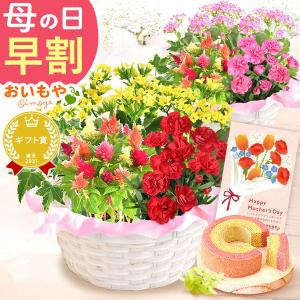 母の日 花 ギフト プレゼント スイーツ 早割 花とスイーツ 2026 花鉢 鉢植え お菓子 寄せ植え メッセージ カーネーション セット 50代 60代 70代