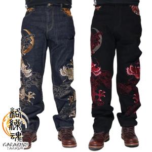 絡繰魂 カラクリダマシイ 和柄 ジーンズ デニム メンズ 総刺繍 粋 月光双龍 252240 送料無料