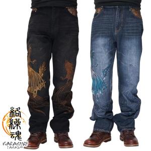 絡繰魂 カラクリダマシイ 和柄 ジーンズ デニム メンズ 総刺繍 粋 鳳凰 252241 送料無料