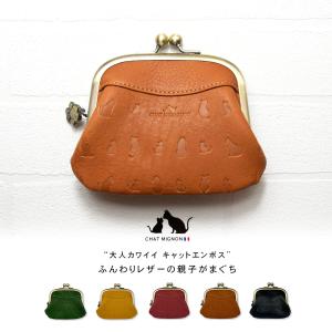 キャットデザイン 親子がま口 / 猫 ネコ 本革 型押し がまぐち シャー ミニヨン レディース 財布 革財布 さいふ ガマグチ ブランド CHAT MIGNON