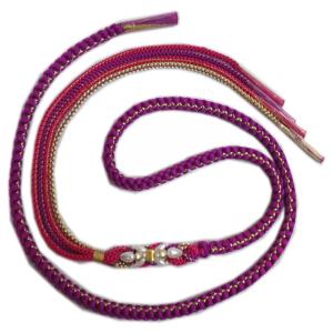 【訳有り 少難あり】 帯締め 帯〆 パールビーズ飾り付 正絹 明紫 先割れ 3色使い 振袖 成人式 着物 帯じめ 振袖用 紫色