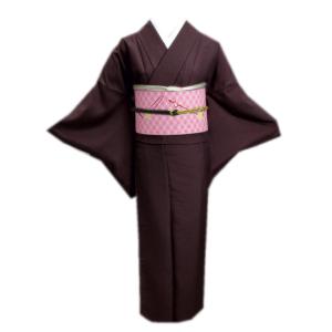 【訳有り 少難あり】 色無地 着物 洗える 袷 軽装帯 付け帯 2点セット 濃茶 S 小さいサイズ 女性用