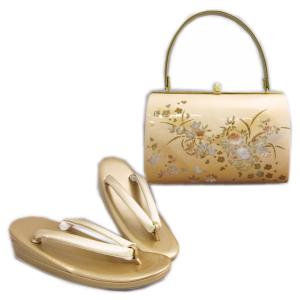 【訳有り 少難あり】 草履バッグセット 金彩入り薄金金地古典花籠 フリー 24cm 日本製 振袖 成人式 卒業式 袴 留袖 訪問着 着物