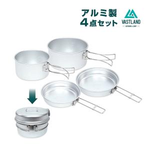 VASTLAND クッカー 4点セット アルミ キャンプ用 コッヘル 調理器具 鍋 収納袋付き 爆買