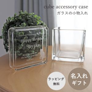 名入れ ガラスの小物入れ キューブ型 アクセサリーケース 誕生日 記念日 記念品 還暦 古希 喜寿 敬老の日 退職 送別 ギフト プレゼント 贈り物 名前入り