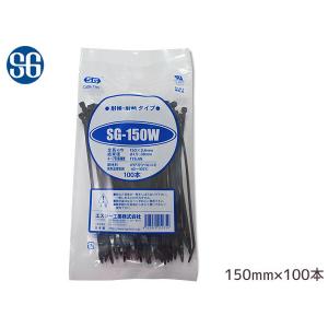 結束バンド ケーブルタイ タイラップ 黒 150mm 100本 SG-150W 耐候 耐熱 エスジー工業 メール便 送料無料