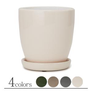植木鉢 おしゃれ 陶器鉢 シンプルポット RR072-125 4号(12.5cm) 鉢底穴有り 受け皿付き ホワイト モダン インテリア