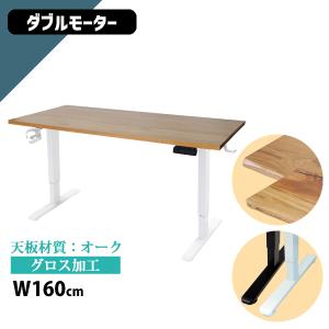 昇降デスク 電動 ハイグレードモデル PSE適合 160cm 1600mm オーク材 高級 木製 天板 グロス加工 動荷重約100kg 静荷重約180kg 上下昇降