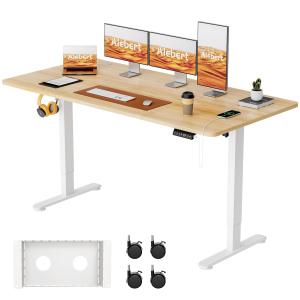 Alebert 電動式 昇降デスク 昇降式デスク 幅140*奥行70cm スタンディングデスク 入り替え用キャスター付き 収納ボックス付き USB充電
