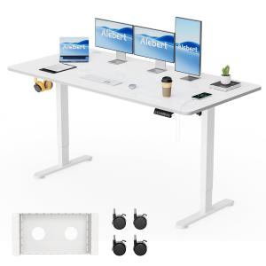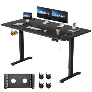 Alebert 電動式 昇降デスク 昇降式デスク 幅160*奥行80cm スタンディングデスク 入り替え用キャスター付き 収納ボックス付き USB充電