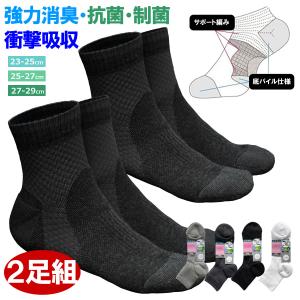2足組 強力消臭 スポーツソックス 靴下 23-25 25-27 27-29 男女兼用 ショート丈 つま先+かかとパイル編み 抗菌 制菌 ハイパー・イオン加工 無地 通学 通勤