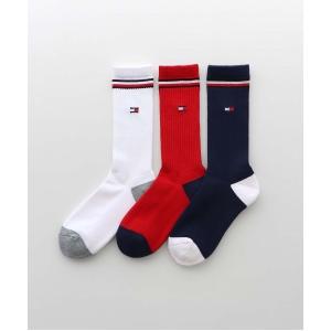 靴下 「3足セット」TOMMY HILFIGER メンズ レディース オーガニックコットン混 足底パイル ワンポイントライン リブソックス 92554
