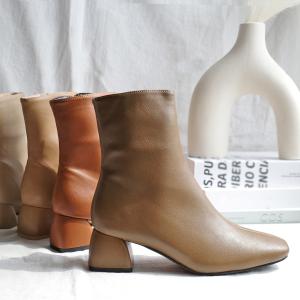 ショートブーツ レディース 裏起毛 スクエアトゥ プレートヒール 歩きやすい 履きやすい アミアミ