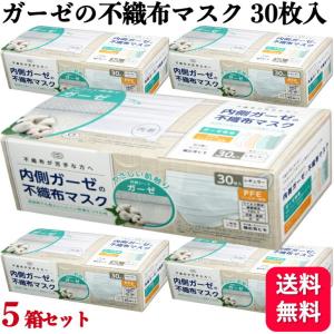 5箱セット 内側ガーゼ 不織布マスク 30枚 ふつう やさしい肌触り