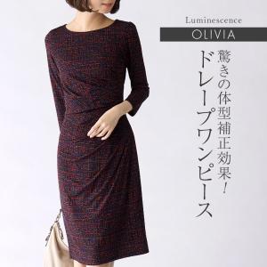 ワンピース レディース オリヴィア ストレート ルミネッセンス op109-050012 きれいめ 30代 40代 50代 60代 上品 大きいサイズ 膝丈 七分袖 春秋冬