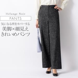 セミワイドパンツ メランジェノワール pt003a-09 きれいめ 40代 50代 着やせ 上品 大きいサイズあり ロング丈 春秋冬