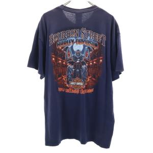 HARLEY DAVIDSON ハーレーダビッドソン バックプリント BOURBON STREET 半袖 Tシャツ XL ネイビー メンズ 古着 中古
