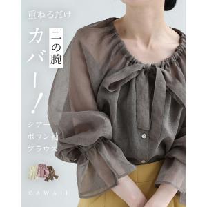 Sから3L対応 重ねるだけ 二の腕カバー! シアーポワン袖ブラウス
