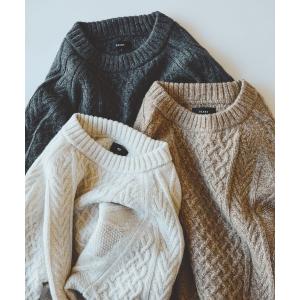 セーター ニット 5ゲージ ラムウール クルーネック ケーブルニット メンズ レディース