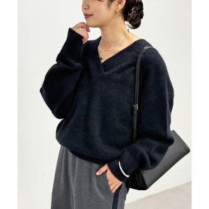 ニット セーター 「華やかな印象に」ヘアリーヤーン深Vネックニット レディース