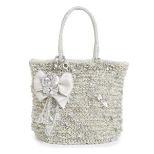 (美品)ANTEPRIMA アンテプリマ PB15F25109 フィオリトゥーラ バスケット PVCワイヤー ホワイト シルバー ハンドバッグ チャーム付き シルバー金具