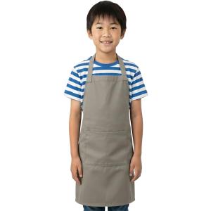 子供用エプロン シンプル 無地 男女兼用 前ポケット付き お手伝い 料理 工作 給食当番 (グレージュ, L)