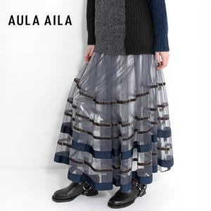 AULA AILA アウラアイラ ボーダーチュールスカート グレー サイズ0 BORDER TULLE SKIRT