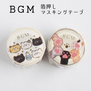 BGM マスキングテープ 猫柄 文房具 文具 20mm ★猫柄箔押しマスキングテープ(にゃんこ・肉球)★