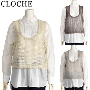 CLOCHE メッシュ ニット ベスト レディース ベージュ グレージュ モカブラウン 40代 50代