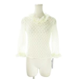 未使用品 ブルーベル Bluebell ニットトップス 9AR 白 ホワイト 七分袖 フリルネック 透かし編み /AO30 ■GY58 レディース