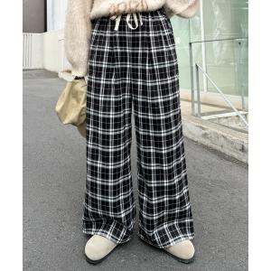 パンツ 「UNISEX」ネルチェックタックボリュームワイドパンツ レディース メンズ