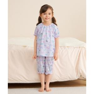 パジャマ おなか安心ボタン付き半袖ガーリーパジャマ(シトラス・りぼん) キッズ 子供 女の子