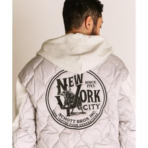 パーカー Schott/ショット/QUILTED COMBI. ZIP HOODED/キルティング コンビ ジップパーカー メンズ レディース
