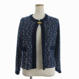 ドゥクラッセ DoCLASSE ニットジャケット カーディガン 長袖 ツイード 紺 ネイビー L レディース