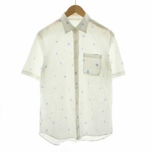 ドゥクラッセ DoCLASSE ボタンダウンシャツ 半袖 総柄 L ホワイト ブルー 55222189 /NQ メンズ