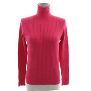 ドゥクラッセ DoCLASSE ニット セーター ワイドリブ ハイネック 長袖 ウール混 ピンク M レディース