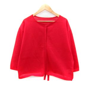ドゥクラッセ DoCLASSE カーディガン ミドル丈 ラウンドネック 無地 シースルー L 赤 レッド /SY10 レディース