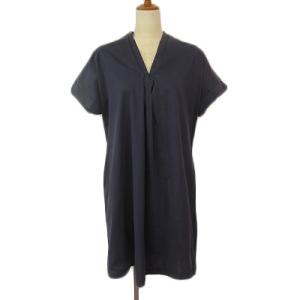 ドゥクラッセ DoCLASSE ワンピース Vネック タック フレンチスリーブ L 紺 ネイビー レディース