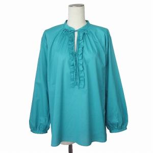 ドゥクラッセ DoCLASSE コットンローン フリルキーネックブラウス 11 ターコイズ レディース