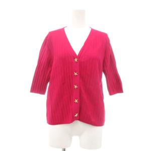 ドゥクラッセ DoCLASSE 美品 スターフィッシュ・柄編みリブカーディガン ニット 5分袖 M ピンク 12790-323 ■GY43 /KE レディース